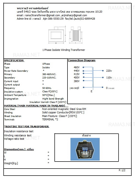 พระราม3 ทรานสฟอร์เมอร์ จำหน่าย ซ่อม เช่า หม้อแปลงไฟฟ้า 1เฟส 3เฟส Auto Isolate K-Factor Start Reactor Water cooled transformer ใช้เหล็กเหล็กซิลิคอนเกรดอย่างดี[S7-14] ประสิทธิภาพสูงช่วยประหยัดไฟและเกรดพิเศษสามารถสั่งได้[lowloss, amorphous] email : rama3transformer@gmail.com ,arjinsharp@gmail.com line id Admin : rama3 [ขอราคา ใบเสนอราคา สอบถามข้อมูลหม้อแปลงเบื้องต้น] line id Arjin : rama3transformer [สอบถามรายละเอียดสินค้า-ด้านเทคนิค] Ajin: 086-5550139 ข้อมมูลสินค้าด้านเทคนิค fax/tel.(auto)02-6899428 จ-ศ 9-17น รับสินค้าได้โทรแจ้งก่อนครับ https://www.rama3transformer.com http://praram3.lnwshop.com http://transformer.rama3.net http://www.rama3.net https://transformersrama3.yellowpages.co.th ขาย ผลิต ซ่อม เช่า หม้อแปลงไฟฟ้า 1เฟส 3เฟส auto isolate type Dry-Oil ทุกชนิด มีสินค้าในสต็อกพร้อมส่งจำนวนมาก วัสดุมาตรฐานอุตสาหกรรม ไทย - ญี่ปุ่น